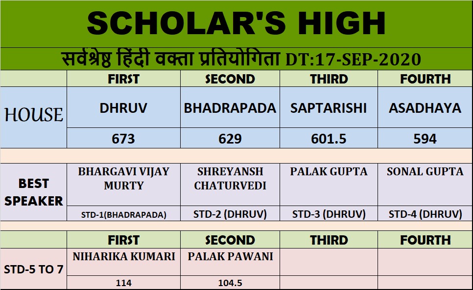 Hindi Speech Competition- 17/09/2020