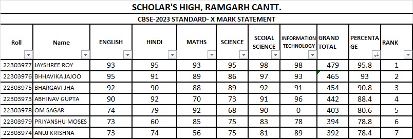 CLASS X RESULT SESSION 2022-2023
